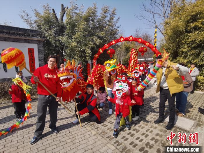 兩岸婚姻家庭成員一道舞龍,盼新一年龍行龘龘。中新網(wǎng)記者 鐘升 攝