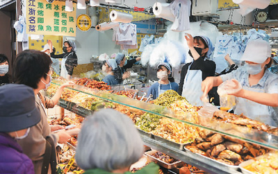 年菜是除夕家人圍爐時享用的團圓飯。島內(nèi)機構(gòu)日前進行網(wǎng)絡(luò)調(diào)查發(fā)現(xiàn),福建名菜佛跳墻最受臺灣網(wǎng)友喜愛,因其用料珍貴豐富,也有“福壽全”的寓意。餃子同樣被眾多網(wǎng)友認為不可或缺,因為外形酷似元寶,可以討個“招財進寶”的彩頭。豬腳、長年菜(蔬菜)、米糕等也榜上有名。每到過年時,有百年歷史的臺北南門市場都會擠滿購買年菜的民眾,這里的福建佛跳墻、江浙名菜、上海糕點、湖南臘肉等大陸各地美食也深受追捧,采買的隊伍甚至會排到大門外。