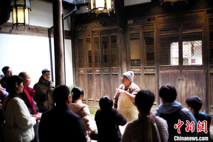 2月15日,許若俠在自己的民宿里向游客介紹自己的創(chuàng)新產(chǎn)品。(徽州區(qū)委宣傳部供圖)