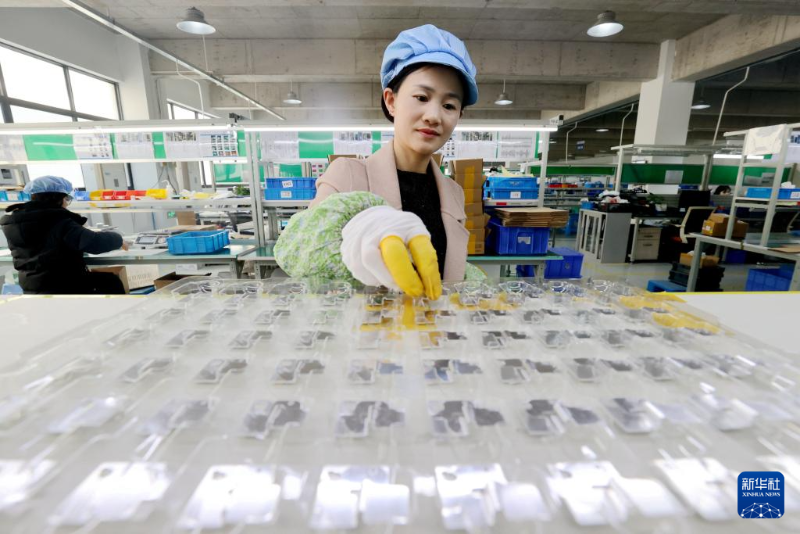 2月18日,在山東省臨沂市郯城縣郯城街道一家電子企業(yè),工人在生產(chǎn)線上工作。