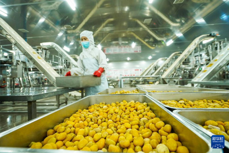 2月18日,工人在河北省遵化市一家板栗加工企業(yè)的車間工作。