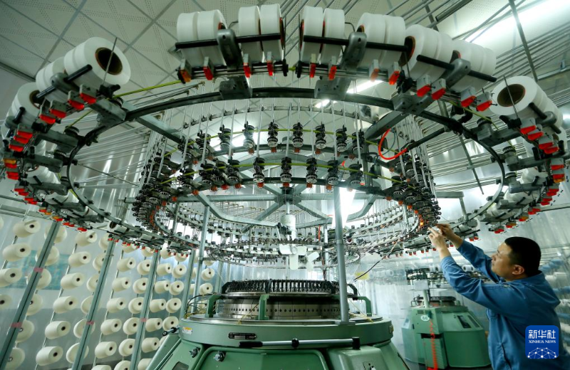 2月18日,在位于山東省青島市即墨區(qū)的青島頤和針織有限公司,工人在生產(chǎn)服裝面料產(chǎn)品。