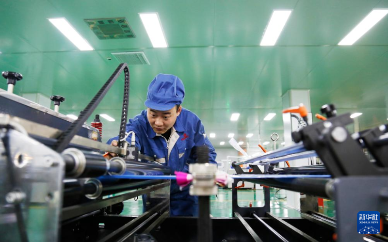2月18日,在山東青島市即墨區(qū)一家醫(yī)療設(shè)備企業(yè),工人在生產(chǎn)車間內(nèi)作業(yè)。