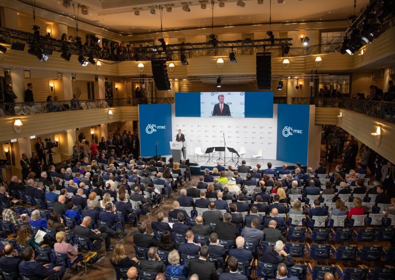 2月16日,在德國慕尼黑,慕安會主席克里斯托夫·霍伊斯根在第60屆慕尼黑安全會議(慕安會)開幕式上致辭。新華社記者張帆攝