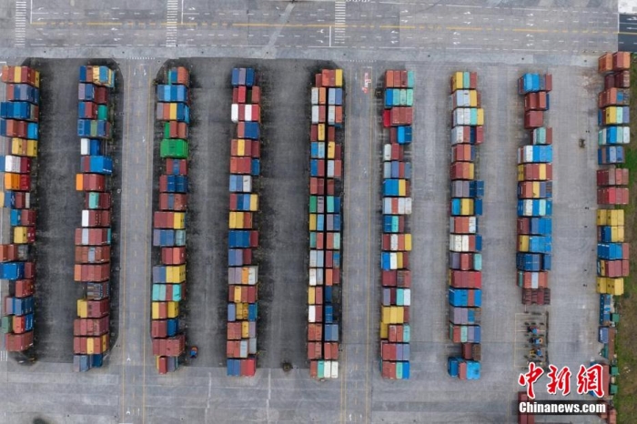 資料圖:碼頭堆滿(mǎn)了集裝箱貨物。記者 劉忠俊 攝