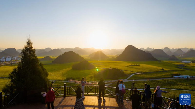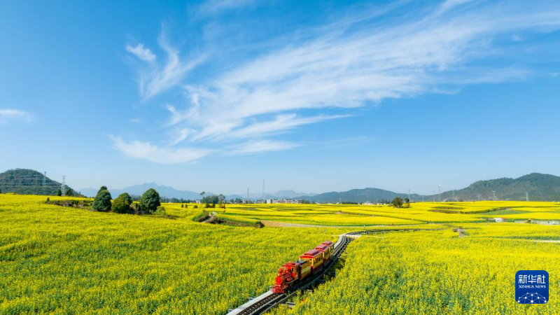 近期,云南省曲靖市羅平縣近百萬畝油菜花相繼綻放,花海與山巒、村寨勾勒出一幅田園春景圖,吸引不少游客前來賞花踏青,感受春天的氣息。