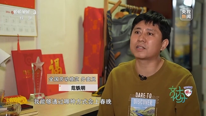 全國勞動(dòng)模范 外賣員 范鐵明:2023年,我被評為全國最美外賣配送員,這個(gè)獎(jiǎng)項(xiàng),不單純是給我個(gè)人的,實(shí)際上是對新就業(yè)群體,對騎手的一個(gè)認(rèn)可。根本就沒有想到我能夠通過哪種方式會上春晚,因?yàn)槲矣植皇菍I(yè)的演職人員,當(dāng)時(shí)我并不是很相信,我們分配的是《勞動(dòng)最光榮》,它是一個(gè)通過動(dòng)畫片的形式,就是我們兒時(shí)都會看一些動(dòng)畫片,動(dòng)畫片里都會有一些主人公,比如說《黑貓警長》當(dāng)中的黑貓警長,《大鬧天宮》里的孫悟空,包括《小貓釣魚》里頭的貓媽媽,當(dāng)然都是我們當(dāng)時(shí)崇拜的一個(gè)對象,最終我們成為或即將成為他們。