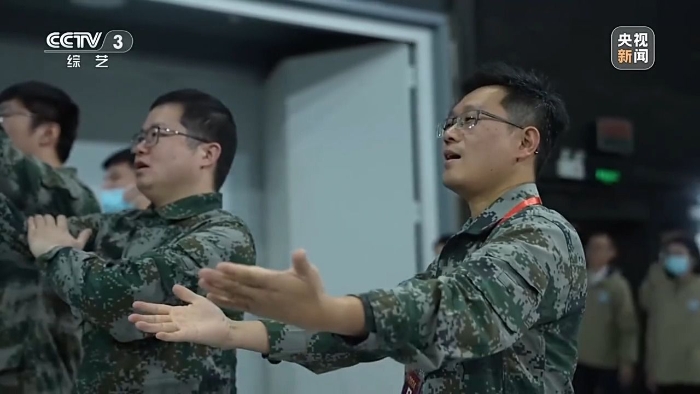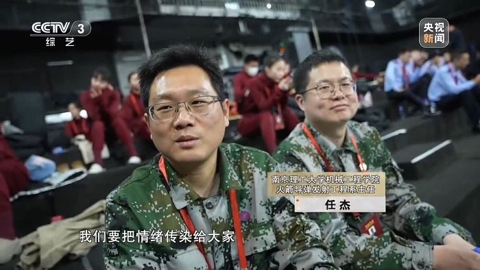 南京理工大學(xué)機(jī)械工程學(xué)院火箭導(dǎo)彈發(fā)射工程系主任 任杰:你看我們穿的這個(gè)服裝跟國防是相關(guān)的,而且又是演的貝塔這個(gè)角色,都應(yīng)該為它去增添光彩。我們在走廊里面不在乎大家的目光,雖然文藝表演不是我們的專長,但是我們拿出真誠的態(tài)度,因?yàn)榛叵胄r(shí)候看動(dòng)畫片多幸福,小時(shí)候蹦蹦跳跳唱的時(shí)候,要把情緒傳染給大家。
