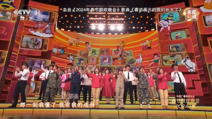 今年的總臺春晚有一首與動(dòng)畫片有關(guān)的歌曲節(jié)目,從開飛機(jī)坦克的舒克貝塔到探索自然之謎的海爾兄弟,這些經(jīng)典國產(chǎn)動(dòng)畫片中的主角伴隨著幾代人度過了美好的童年,也為許多孩子埋下了職業(yè)夢想的種子。春晚舞臺上來自各行各業(yè)的勞動(dòng)者,用演唱經(jīng)典動(dòng)畫片主題曲的方式訴說著自己成長故事。
