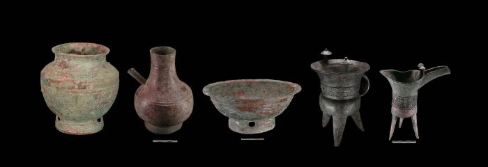 M2出土銅罍、盉、盤、斝、爵(M2 :1、2、23、3、8)