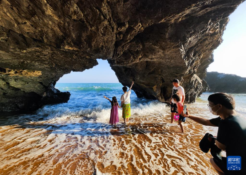 2月21日,游客在環(huán)島旅游公路萬寧山欽灣段旁的海灘游玩(手機(jī)照片)。