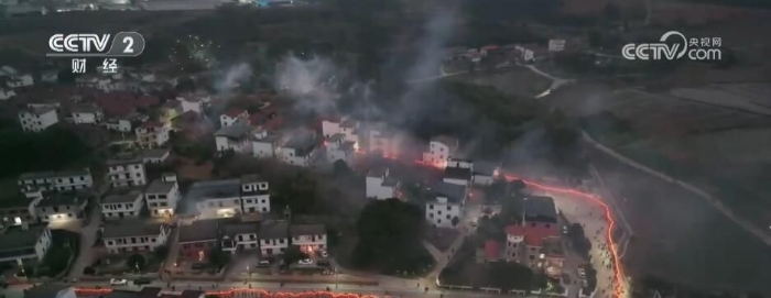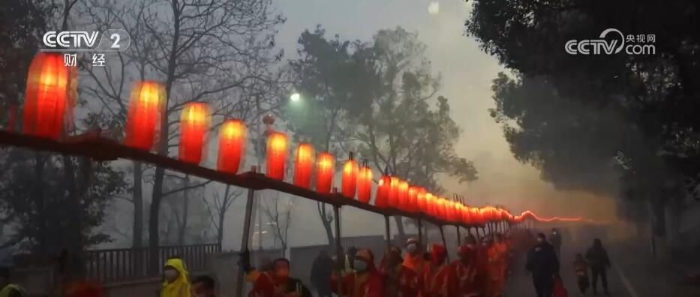 近日,一條火紅的“板燈龍”燈隊穿梭于江西南昌安義縣,“板燈龍”連接在一起,氣勢磅礴。