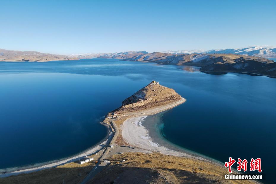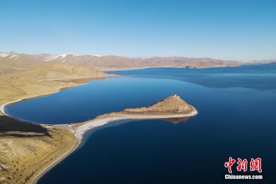 西藏自治區(qū)山南市羊卓雍錯(簡稱羊湖)藏語意為“碧玉湖”,湖面海拔4441米,與納木錯、瑪旁雍錯并稱西藏三大“圣湖”。近日,中新網(wǎng)記者自駕羊卓雍錯看到,周邊部分山體被積雪覆蓋,湖水更顯深藍,航拍視角下像巨大的藍寶石鑲嵌在高原大地,風光壯麗。在羊卓雍錯湖畔,記者還偶遇藏原羚、赤狐等野生動物,盡顯高原生態(tài)之美。圖為西藏羊卓雍錯日托寺風光。江飛波 攝