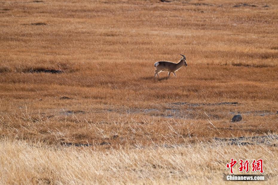 一只藏原羚在羊卓雍錯湖畔濕地覓食。江飛波 攝