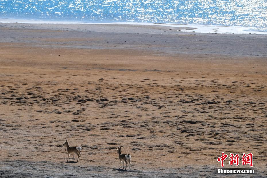 羊卓雍錯湖畔,兩只小藏原羚覓食。江飛波 攝
