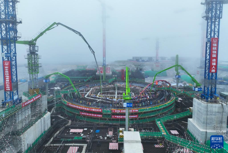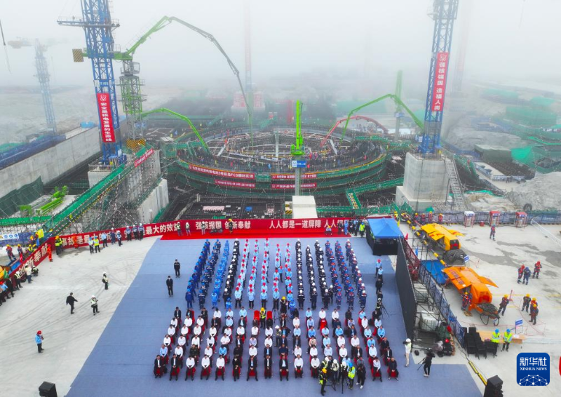 2月22日,中核集團(tuán)漳州核電二期工程“華龍一號(hào)”3號(hào)機(jī)組澆灌核島第一罐混凝土澆筑現(xiàn)場(chǎng)(無人機(jī)照片)。新華社發(fā)(中核集團(tuán)中核二四公司供圖)