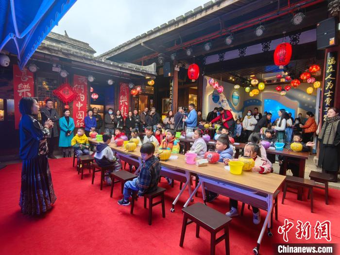 2月24日,福州臺灣會館,嵐臺傳統(tǒng)燈籠傳承人康桂箖正指導臺胞子女們畫燈籠。中新社記者 閆旭 攝