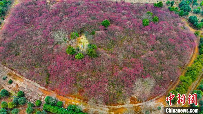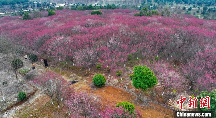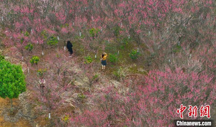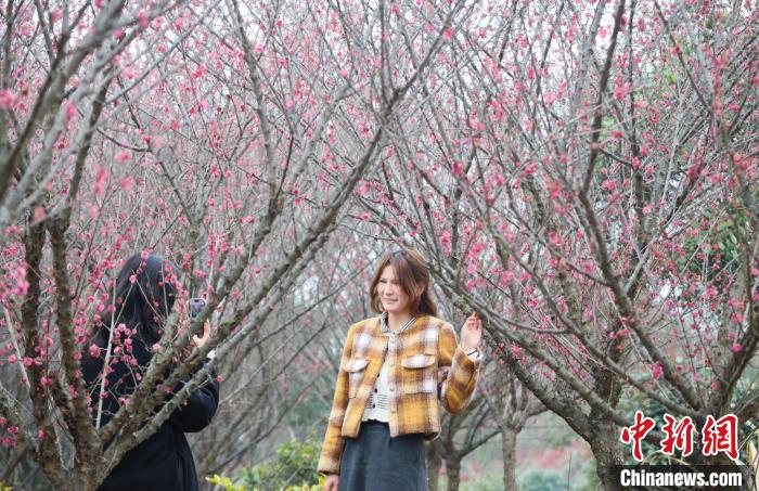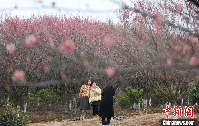 2月28日,合肥市民在安徽省合肥市肥西縣銘傳鄉(xiāng)桂樹社區(qū)百畝紅梅基地賞花拍照。近期,肥西縣各地梅花次第綻放,吸引當?shù)厥忻窈陀慰颓皝碣p花踏春,享受“梅”好時光。