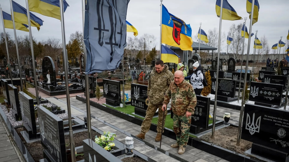 2月24日,烏克蘭危機升級滿兩周年。一些烏克蘭人在首都基輔外郊的布查鎮(zhèn)悼念死者。(圖源:路透社)