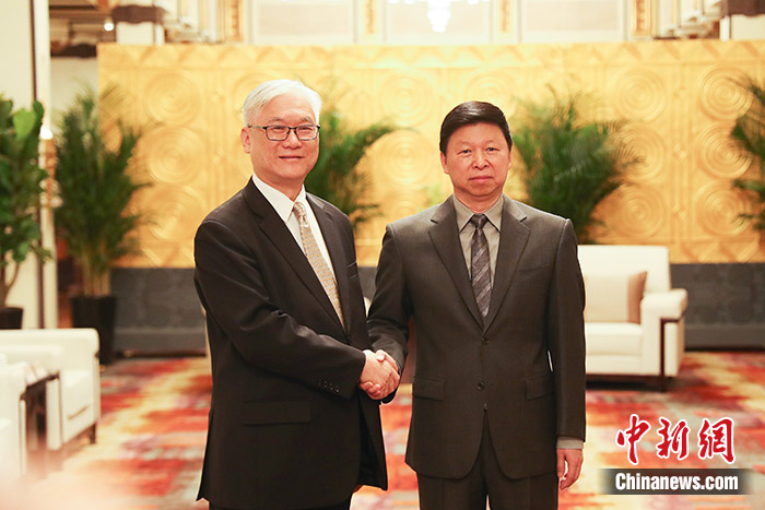 2月29日,中共中央臺(tái)灣工作辦公室、國務(wù)院臺(tái)灣事務(wù)辦公室主任宋濤(右)在上海會(huì)見來訪的中國國民黨副主席夏立言一行。 中新社記者 張亨偉 攝