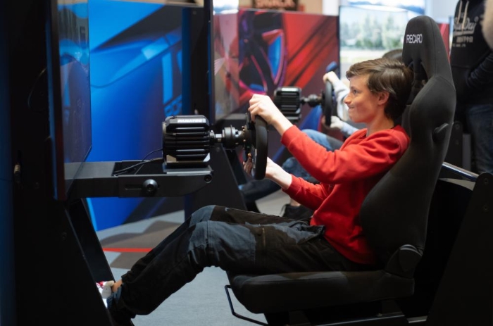 2月28日,一名觀眾在瑞士日內(nèi)瓦舉行的2024年日內(nèi)瓦國(guó)際車(chē)展上體驗(yàn)?zāi)M駕駛。新華社記者孟鼎博攝