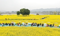 3月3日,游客在四川省眉山市彭山區(qū)五湖四海濕地公園油菜花田游玩(無人機(jī)照片)。
