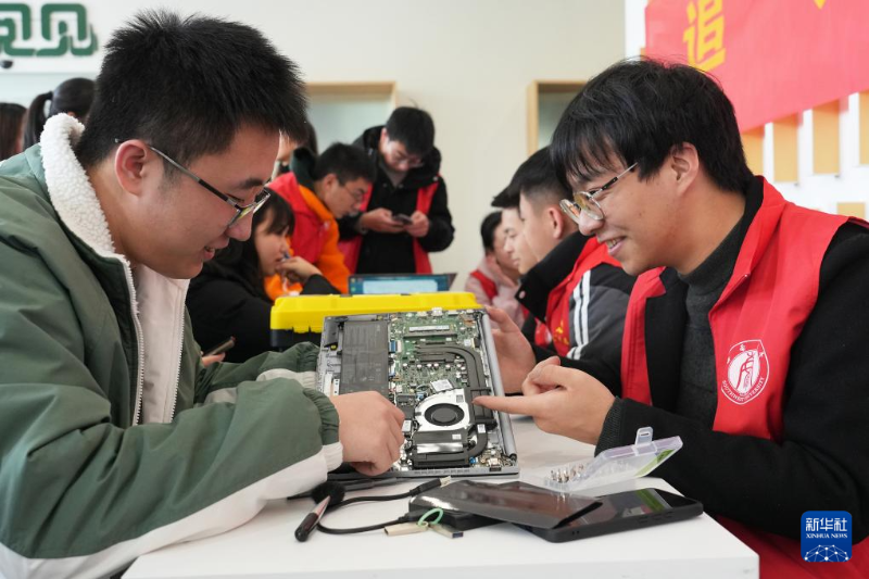 3月3日,在西南大學(xué)學(xué)生園區(qū)志愿服務(wù)活動(dòng)現(xiàn)場,大學(xué)生志愿者在給同學(xué)維修筆記本電腦。