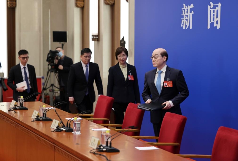 3月3日,全國政協(xié)十四屆二次會議新聞發(fā)布會在北京人民大會堂舉行。大會新聞發(fā)言人劉結(jié)一向中外媒體介紹本次大會有關(guān)情況并回答記者提問。這是記者在發(fā)布會上采訪。