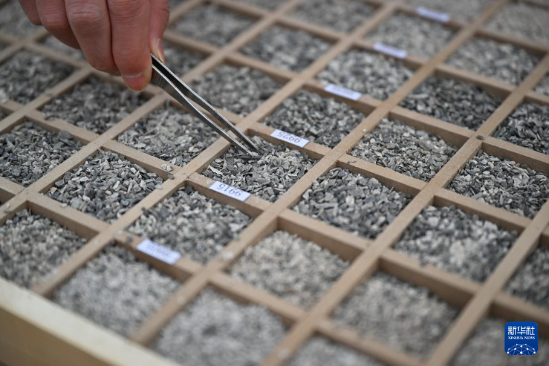 3月3日,科研人員在深地塔科1井研究從地底深處取上來(lái)的巖屑。新華社記者 李響 攝