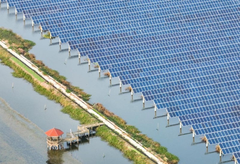 2023年10月11日拍攝的江蘇省興化市千垛鎮(zhèn)連片的光伏發(fā)電板(無人機照片)。新華社發(fā)(周社根 攝)