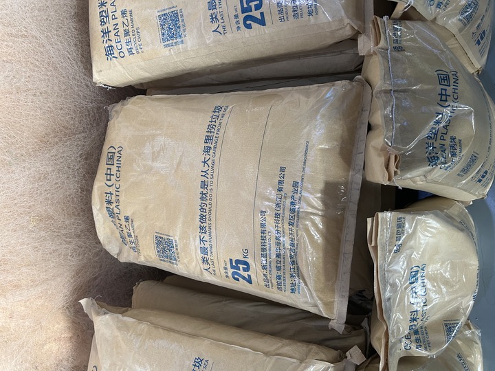 由海洋塑料制成的再生聚乙烯材料(2月20日攝)。
