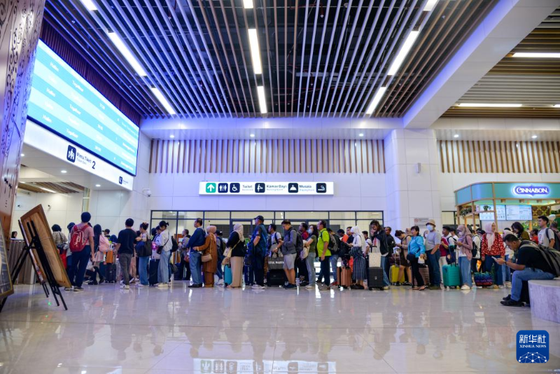 3月3日,在印度尼西亞雅加達哈利姆站,乘客排隊接受安檢準備進入候車大廳。