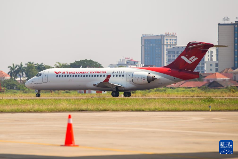 這是3月4日在老撾萬象瓦岱國際機場拍攝的ARJ21飛機。