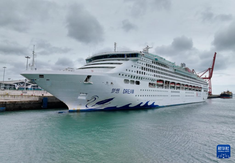 3月6日,“夢想”號國際郵輪??吭谄教秶H郵輪中心碼頭(無人機(jī)照片)。