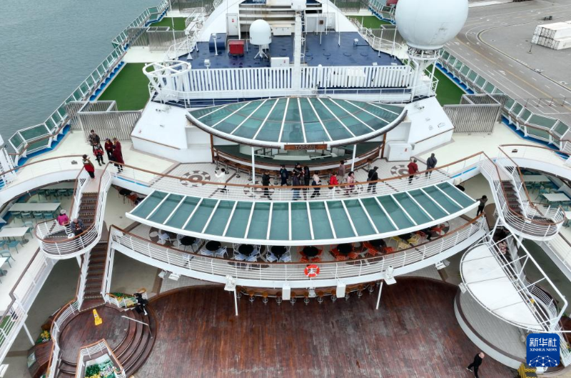 3月6日,旅客在“夢想”號國際郵輪上參觀(無人機(jī)照片)。