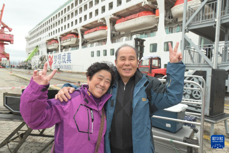 3月6日,搭乘“夢想”號國際郵輪的旅客登船前在碼頭拍照留念。
