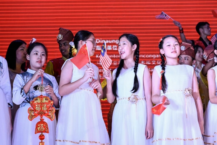 2024年1月28日,在馬來西亞中華大會堂總會大廈,演員們在舞臺上表演。為慶祝中國和馬來西亞建交50周年,“馬中友好之夜”暨2024馬來西亞中國青少年藝術節(jié)開幕式28日晚在馬來西亞中華大會堂總會大廈舉辦。新華社記者 程一恒 攝
