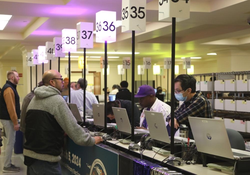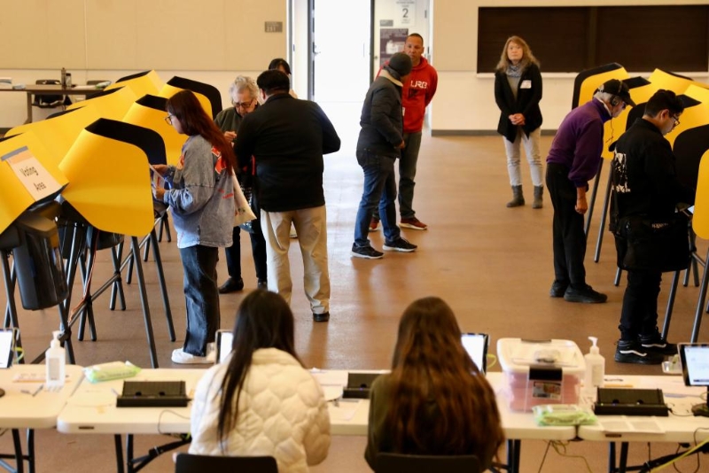 3月5日,選民在美國(guó)舊金山市政廳的投票點(diǎn)參與投票。新華社發(fā)(劉藝霖?cái)z)