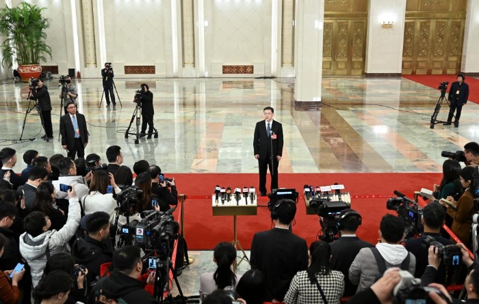 3月5日,第十四屆全國人民代表大會第二次會議首場“部長通道”集中采訪活動在北京人民大會堂舉行。