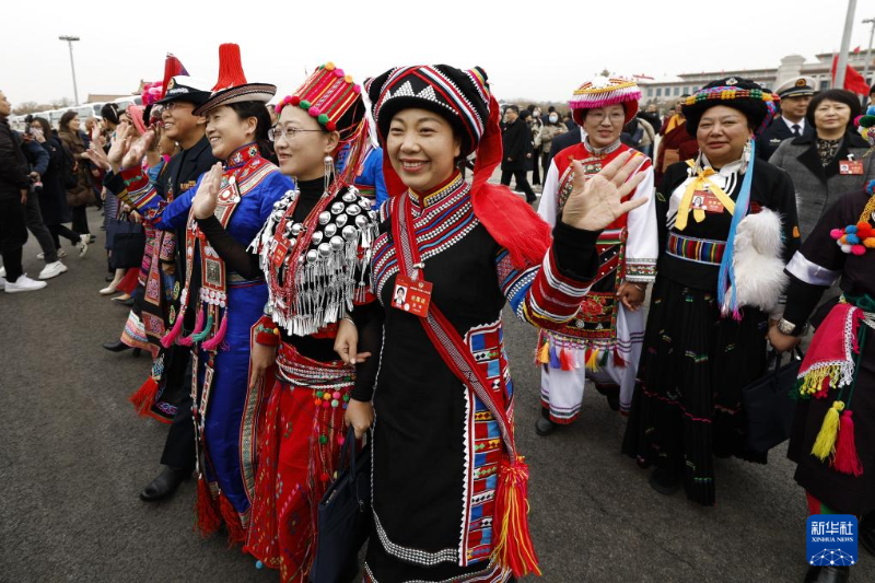 3月4日,身著民族服飾的政協(xié)委員們走向人民大會堂,準(zhǔn)備參加全國政協(xié)十四屆二次會議開幕會。
