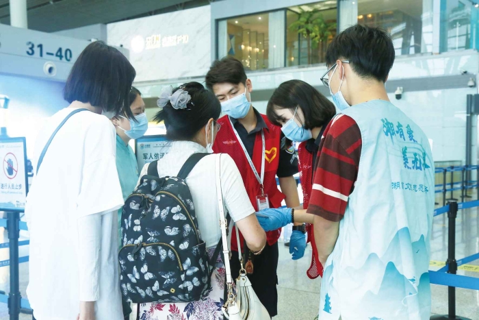 ▲ 湖南高校文旅志愿者假日高峰時(shí)期在長(zhǎng)沙黃花機(jī)場(chǎng)服務(wù) 湖南省文化和旅游廳供圖