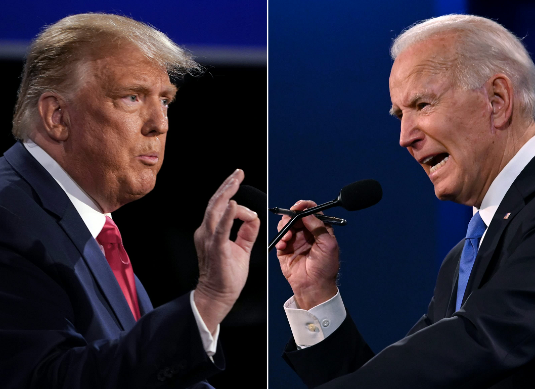 2020年10月22日,特朗普和拜登在田納西州納什維爾市貝爾蒙特大學(xué)舉行的最后一場總統(tǒng)候選人辯論中 圖自美國CNBC