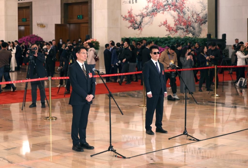 這一場“代表通道”上,還迎來了首位盲人全國人大代表?!拔沂且粋€盲人,但從基層走進人民大會堂依法履行職責,我感到這是‘摸’得著的民主!”全國人大代表、福建省殘聯(lián)兼職副理事長王永澄直言,要把盲人兄弟姐妹們的聲音帶到大會上,讓更多人能看見、聽見盲人姿態(tài)與聲音。