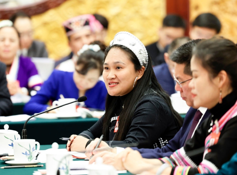 3月5日,李瑞芳代表在十四屆全國(guó)人大二次會(huì)議云南代表團(tuán)全體會(huì)議上發(fā)言。新華社記者 劉衛(wèi)兵 攝