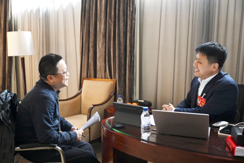 3月7日,舒勇委員在全國(guó)政協(xié)十四屆二次會(huì)議第二場(chǎng)“委員通道”集體采訪(fǎng)活動(dòng)上接受媒體采訪(fǎng)。新華社記者 李賀 攝