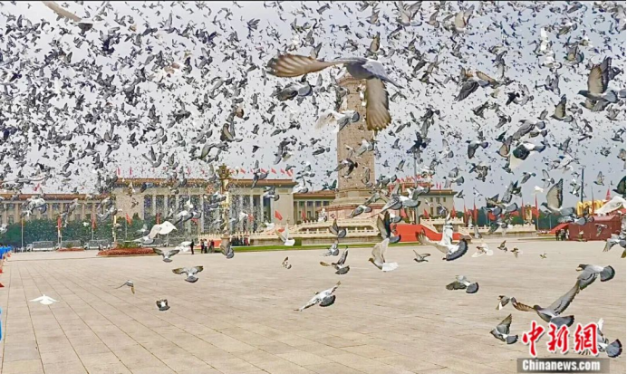 2021年是中國共產(chǎn)黨建黨100周年。在7月1日的慶祝大會(huì)上,10萬羽和平鴿被放飛。中國信鴿協(xié)會(huì)供圖