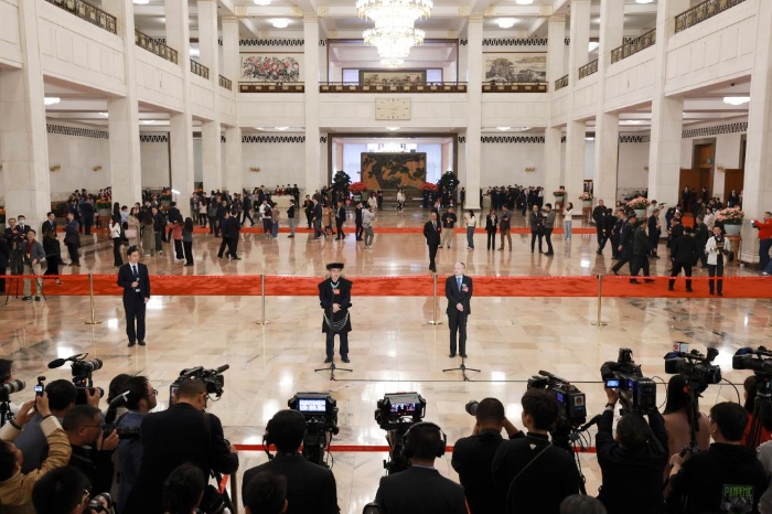 3月11日,第十四屆全國人民代表大會第二次會議第三場“代表通道”集中采訪活動在北京人民大會堂舉行。
