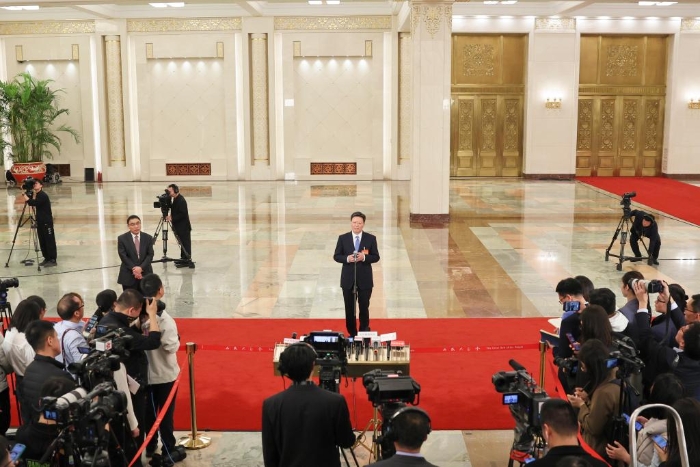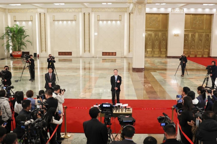 3月11日,第十四屆全國人民代表大會第二次會議第三場“部長通道”集中采訪活動在北京人民大會堂舉行。這是國家金融監(jiān)督管理總局局長李云澤接受媒體采訪。