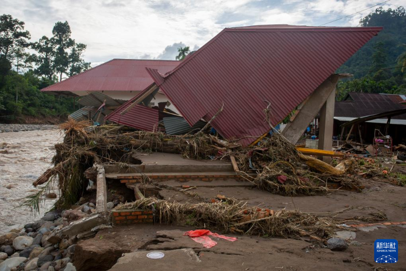 3月10日,在印度尼西亞西蘇門答臘省南佩西西爾,房屋在暴雨中被損毀。