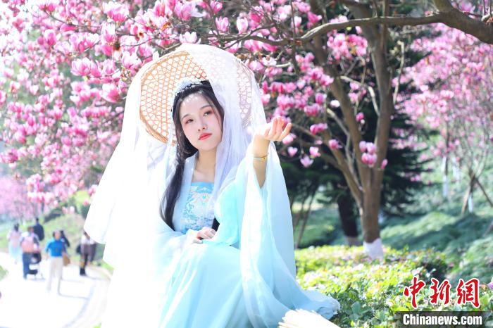 記者11日在重慶園博園看到,穿著漢服的男女老少穿梭于花海之間,留影紅墻綠瓦下,定格繽紛落英中,給人一種歷史“穿越感”。頭戴斗笠、一襲輕紗,游客鄔敏在群花之中擺好姿勢,等待攝影師按下快門的一瞬。她表示,自己從小愛看古裝劇,一直有穿漢服的夢想,每年春天都會穿漢服拍照,“不僅是想定格自己的青春,也覺得年輕人不該丟掉這份文化傳承”。